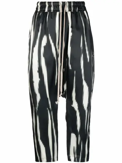black/white zebra print drawstring fastening waist two side slit pockets drop crotch cropped leg