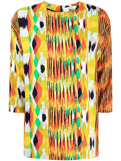 circa 2000s multicolour silk abstract pattern print round neck drop shoulder three-quarter length sleeves straight hem
