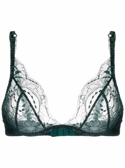 emerald green lace trim adjustable shoulder straps underwire cup rear clasp fastening