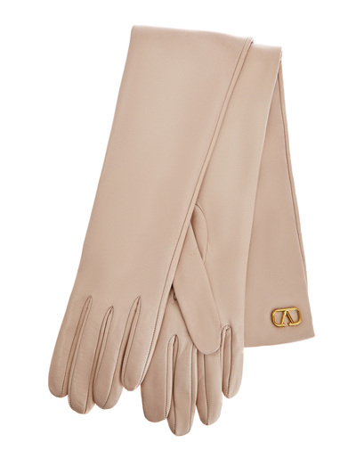 Однотонные высокие перчатки VLOGO Signature из мелкозернистой кожи наппа от Valentino Garavani созданы в мягком пудрово-розовом оттенке. Модель дополнена культовым литым логотипом с напылением цвета «античная латунь». Внутри — подкладка из натурального шелка. Сделано в Италии.