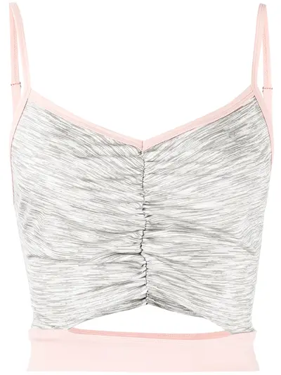 marl grey/rose pink two-tone design contrasting trim spaghetti straps ruched detailing cut-out detailing