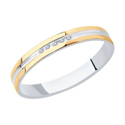 Обручальное кольцо Sokolov из комбинированного золотас фианитами, comfort fit, 3,5 мм 1290554214 (lpn15725221)