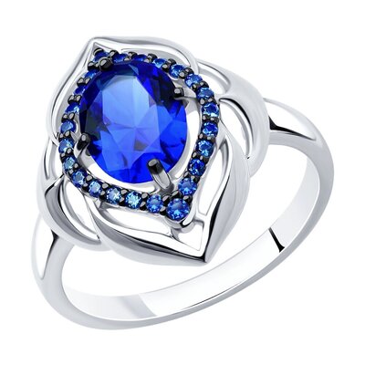 Кольцо Sokolov из серебра с корундом сапфировым (синт.) и синими фианитами 1176852013 (lpn15726558)