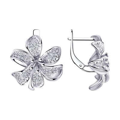 Цветочные мотивы – одна из вечных тем в ювелирном искусстве. Оригинальные серьги из серебра с фианитами в виде распустившихся цветов подчеркнут природную женственность и очарование своей обладательницы. Создайте запоминающийся образ с этим необычным украшением.