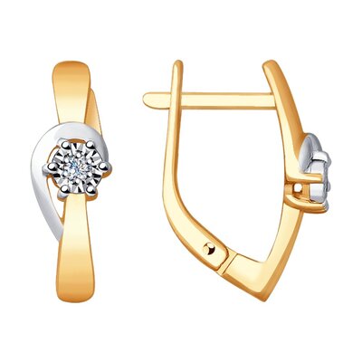 Серьги из комбинированного золота с алмазной гранью с бриллиантами