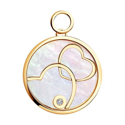Нежный романтичный дизайн золотой подвески с бриллиантом, перламутром и сапфировым стеклом подчеркивает изящность своей обладательницы. Главные символы любви, сердца, делают украшение своеобразным посланием.