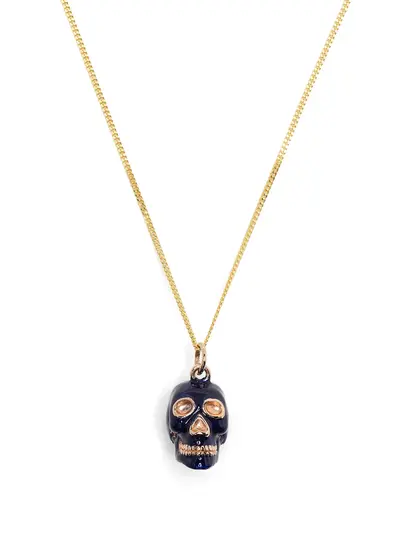 black/gold gold-plated silver skull charm cable-link chain clasp fastening
