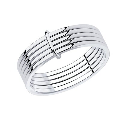 Серебряное кольцо с ультрасовременным дизайном в духе популярного минимализма. По сути, оно представляет собой сборную модель из скреплённых тонких ободов. Итогом дизайнерского замысла стала широкая и комфортная шинка, которая превратилась в трендовое стилевое решение. Лаконизм украшения позволяет носить его в качестве эффектного и универсального аксессуара к любому образу.
