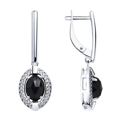 Серьги Sokolov из серебра с чёрными агатами и фианитами 4070986204 (lpn15732512)