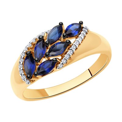 Кольцо Sokolov из золота с синими корунд (синт.) и фианитами 2352402265 (lpn15733393)