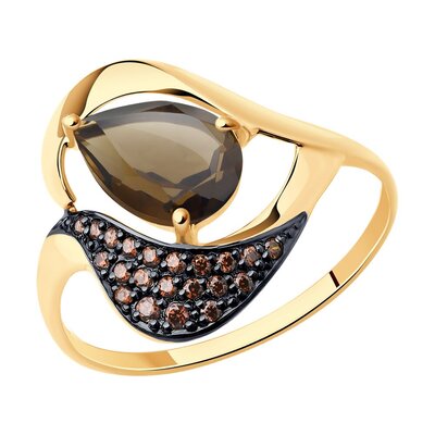 Кольцо Sokolov из золота с раухтопазом и коричневыми фианитами 1525859630 (lpn15738169)