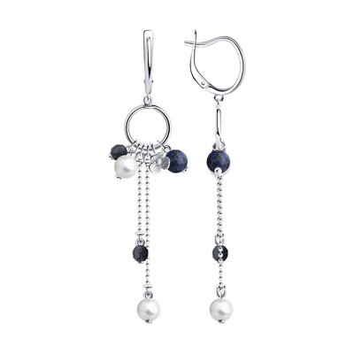 Серьги Sokolov из серебра с содалитом и синтетическим жемчугом 137418467 (lpn15743088)