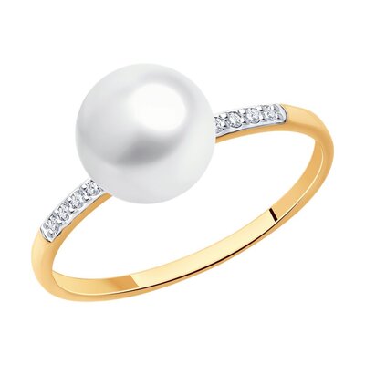 Кольцо Sokolov из золота с жемчугом и фианитами 2064138513 (lpn15744033)
