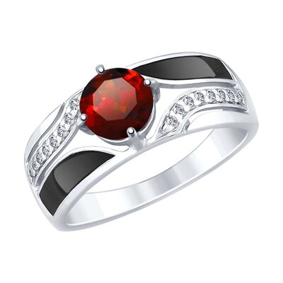 Кольцо Sokolov из серебра с эмалью и гранатом и фианитами 1805987534 (lpn15749217)