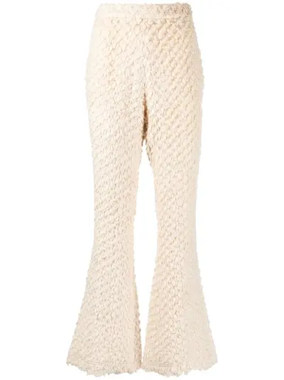 ivory white chunky knit bouclé design flared mid-rise