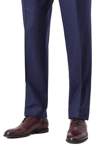 Плавный силуэт, приподнятый мыс и винтажный эффект — бордовые оксфорды идеально транслируют эстетику, характерную для работ дизайнеров бренда, основанного семьей Пантанетти. Мастера марки изготовили обувь из мягкой мелкозернистой кожи, отполированной до матового блеска. Чтобы сделать цвет модели из весенне-летней коллекции 2021 года уникальным, на пару в определенной последовательности нанесли 23 оттенка краски.
