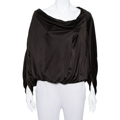 This top by Emporio Armani skillfully merges elegant drapes and folds with a casual, oversized silhouette. The black womens top has a comfortable fit and a design that will look great with both pants and skirts.