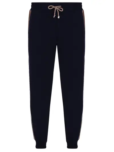-Темно-синие джоггеры c широкими лампасами из мягкого вельвета от BRUNELLO CUCINELLI.
