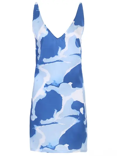 -Легкая сорочка из шелка с принтом в сине-голубых тонах от DEREK ROSE. -Свободный крой, не сковывающий движения, V-образный вырез на груди, регулируемые бретели, эластичная вставка по вырезу спинки.