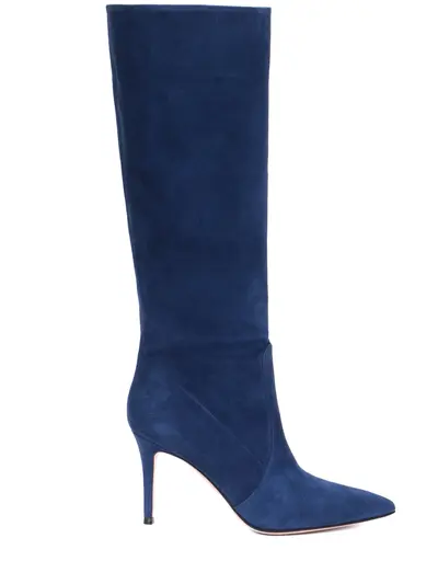 -Синие сапоги Hansen из фактурной замши от GIANVITO ROSSI.