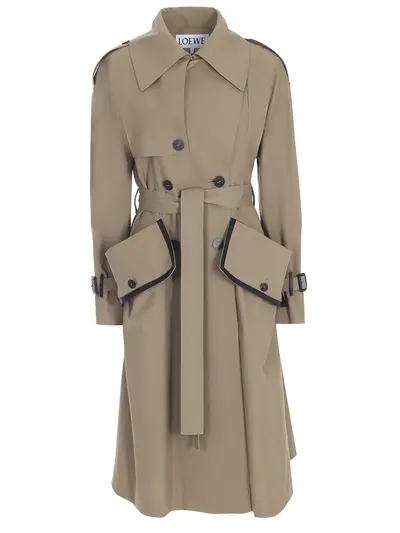 -Бежевый двубортный тренч из плотного хлопкового габардина от LOEWE.
