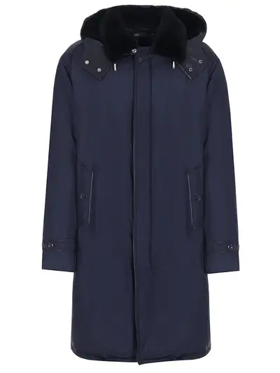 -Удлиненный крой, отложной воротник с отделкой из меха бобра, капюшон, длинные рукава, прорезные карманы, шлица, ветрозащитная планка, застежка-молния.