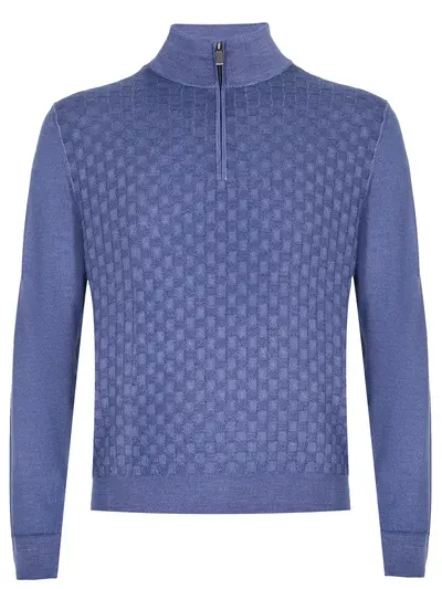 -Модель выполнена из смеси шерсти и шелка в голубом цвете.