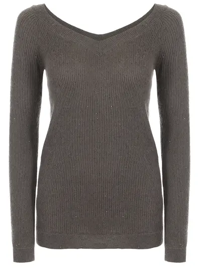 -Кашемировый пуловер от Brunello Cucinelli. -V-вырез на груди и спине, длинный рукав.
