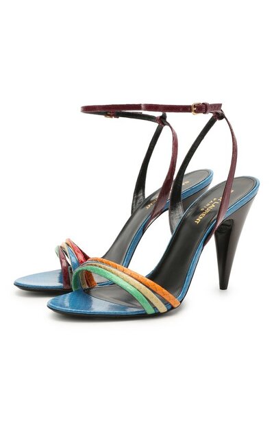 Босоножки Liya из весенне-летней коллекции бренда, основанного Ивом Сен-Лораном, не любят прятаться, поэтому наши стилисты предлагают носить пару с шортами или укороченными брюками. Внимание привлекают не только глянцевая кожа с тиснением под рептилию, но и разноцветные перекрученные ремешки.