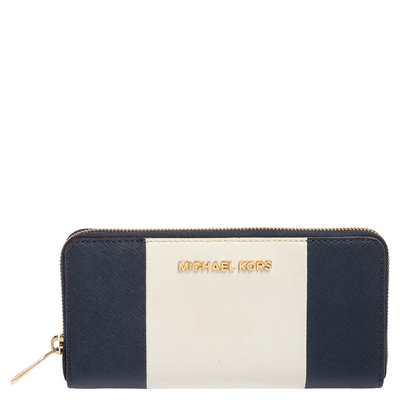 Give your cash and cards a stylish home with this magnificent wallet from the house of Michael Kors. Designed to perfection and crafted from fine quality leather, this wallet can be your go to accessory. Featuring blue and white shades and a gold tone brand logo detailing on the front, this creation is trendy and incredibly stylish.