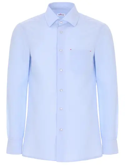 -Светло-голубая рубашка из хлопка с добавлением льна от KITON.