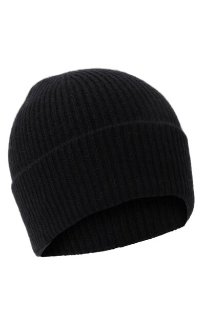 Однотонная шапка бини органично впишется в повседневный образ с курткой, пуховиком или пальто. Для изготовления аксессуара с небольшой нашивкой на отвороте использовали кашемировую пряжу.