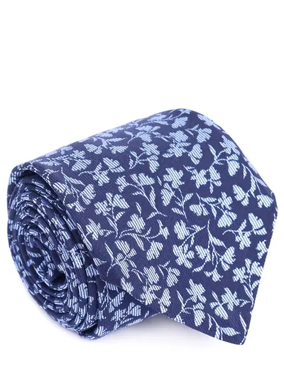 -Синий с мелким принтом галстук из шелка и хлопка от KITON.
