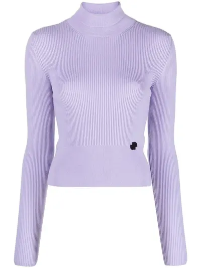 lavender purple stretch-wool ribbed knit logo plaque roll neck long sleeves straight hem