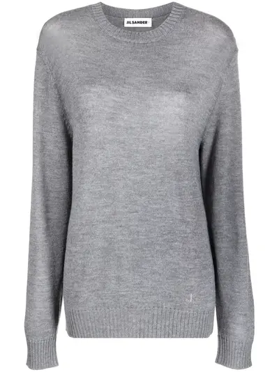 grey wool fine knit crew neck long sleeves straight hem fitted-cuff sleeves ribbed trim