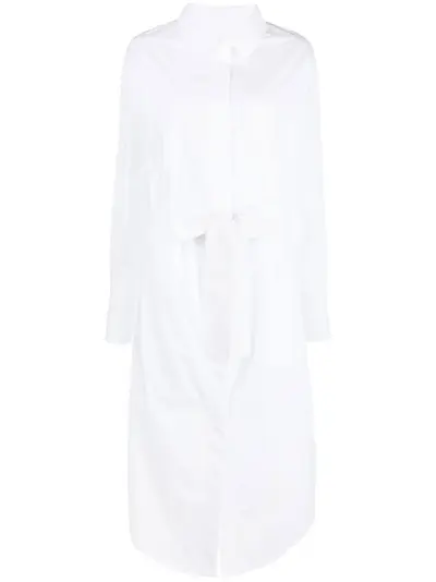 optical white cotton classic collar long sleeves belted waist front button fastening curved hem