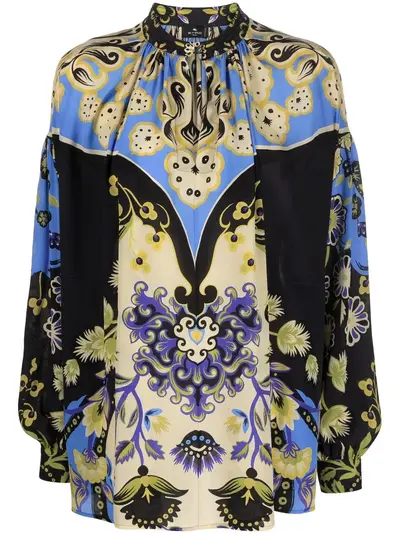 multicolour silk all-over floral print pleat detailing round neck long sleeves