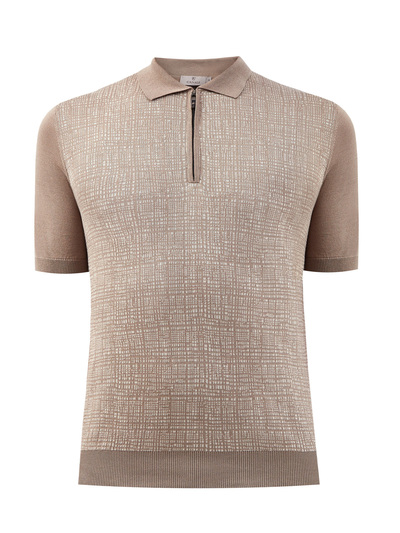 Мужской джемпер-поло от Canali выполнен из легкой и дышащей хлопковой пряжи в приглушенном песочном оттенке. Полностью натуральный состав обеспечивает максимальный комфорт, а техника чулочной вязки придает ткани эластичность. Неформальный акцент — вязаный узор на передней планке. Детали: отложной воротник, застежка на молнию. Сделано в Италии.