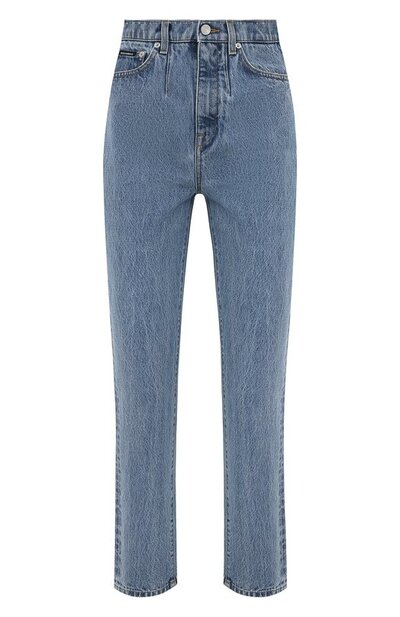 Голубые джинсы из осенне-зимней коллекции виртуозно справляются с многозадачностью. Модель с завышенной посадкой подружится и с футболкой, и с блузой, и с топом. Для пошива модели Доменико Дольче и Стефано Габбана выбрали мягкий плотный хлопок с искусственными потертостями.