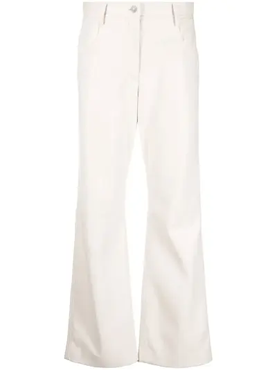 off-white faux leather belt loops concealed fly and button fastening two rounded pockets to the sides two rear patch pockets straight leg