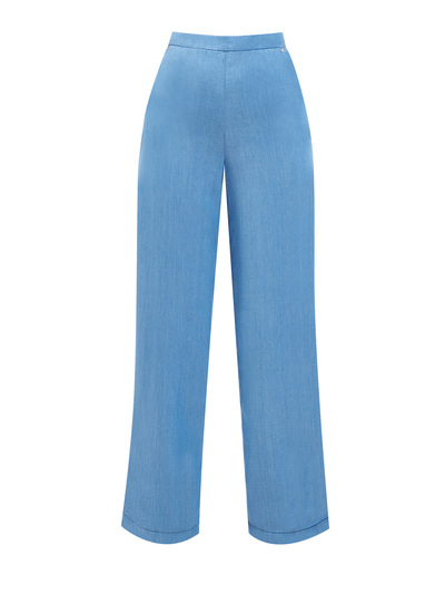 Брюки Shanti от Jacob Cohen. Для создания модели был выбран лиоцелл — легкая, струящаяся ткани на основе древесных волокон, которая обеспечивает максимальный комфорт в летний сезон. Широкий крой дополнен высокой линией талии и формирует гармоничные пропорции, а фурнитура с покрытием silver-plated вносит в образ штрих фирменной роскоши. Сделано в Италии.