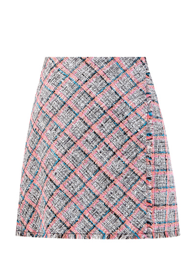 Стильная юбка на запах от Karl Lagerfeld дополнена контрастными панелями из итальянского букле. Элегантная модель с короткой бахромой и черным атласным поясом идеально сочетается с базовой белой футболкой или жакетом. Детали: потайная застежка на молнию, прямой крой.