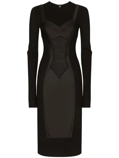 black stretch-design trompe l'oeil effect round neck long sleeves mid-length