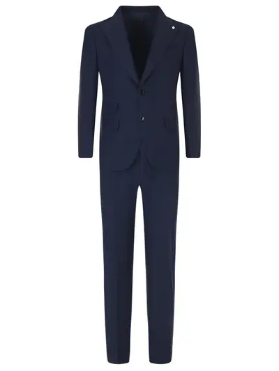-Синий классический костюм из шерсти и льна от LUBIAM.