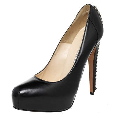 Brian Atwood Black Leather Chain Heel Platform Pumps Size 39.5 476055 (чёрный, lpn8923108)