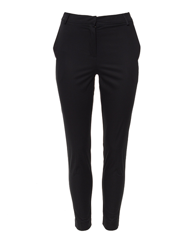 Брюки из гладкого хлопка черного цвета. Прилегающее изделие с комфортной посадкой и двумя карманами по бокам.