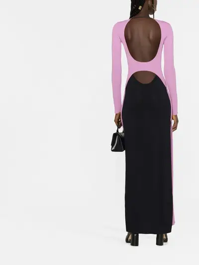 black/light mauve knitted construction cut-out detailing crew neck long sleeves side slits floor-length