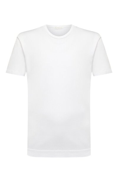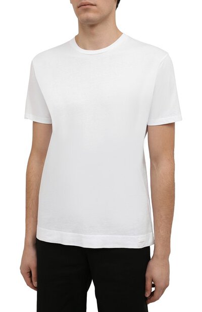 Прямой крой, чистый белый цвет и полное отсутствие декора: футболка с круглым вырезом и короткими рукавами станет выгодным вложением в базовый гардероб. Такая модель из осенне-зимней коллекции впишется в повседневный образ или снизит формальность делового костюма. Для пошива изделия использовали мягкий дышащий хлопок джерси.