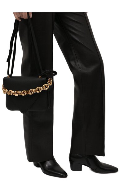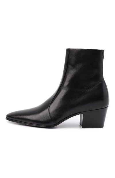 В осенне-зимнюю коллекцию Энтони Ваккарелло включил лаконичные черные казаки Vassili. Для изготовления ботильонов дизайнер марки, основанной Ивом Сен-Лораном, выбрал гладкую мягкую кожу, отполированную до деликатного полуглянцевого блеска. Чтобы пару было удобнее надевать и снимать, внутреннюю боковую панель дополнили молнией.