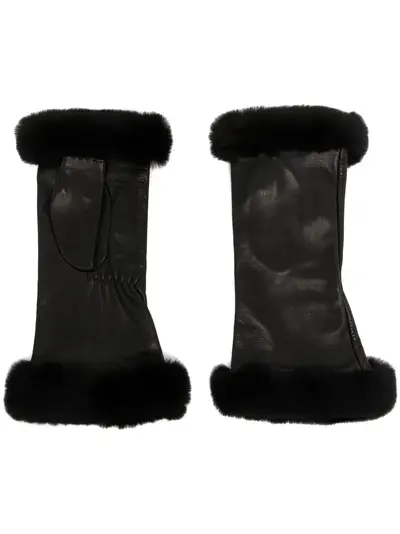 black leather smoothing finish fingerless design faux-fur trimming gathered detailing Sold in pairs.